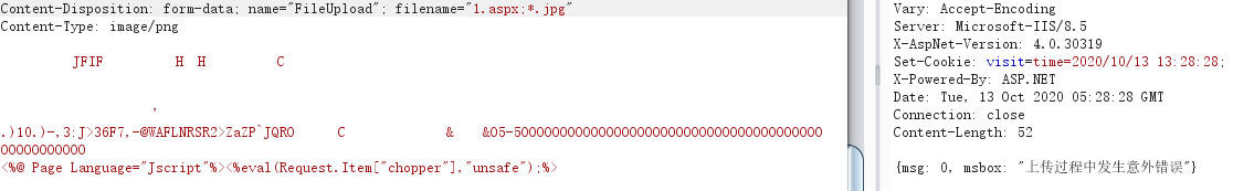 看来对方是要校验后缀名,而且还是白名单的形式,看是否有iis解析漏洞,期间我搜了许多都没有找到iis8.5漏洞文章
