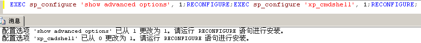 执行后,是无法得知对方是否成功开启了xp_cmdshell,所以可以用ping命令返回时间,来判断