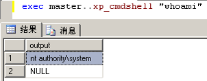 exec master..xp_cmdshell "whoami" --用来执行cmd命令