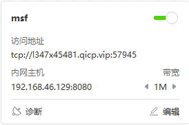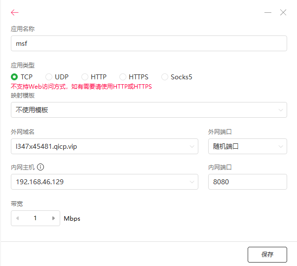 点击花生壳最右下角的’+’号,创建场景,应用名称随便填,内网主机填kali的ip地址,内网端口随便填,我这里填8080,保存