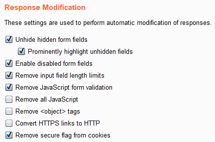 设置用于执行自动响应的修改。可以使用这些选项通过自动重写应用程序响应的HTML来完成各种任务。 下列选项在数据删除客户端控件可能是有用的