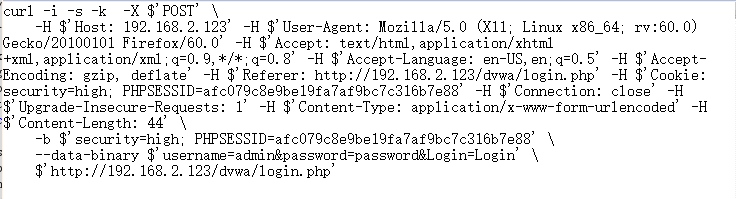 选择Copy as curl command,会复制curl命令,在记事本中粘贴下来,在kali的命令行中使用命令
