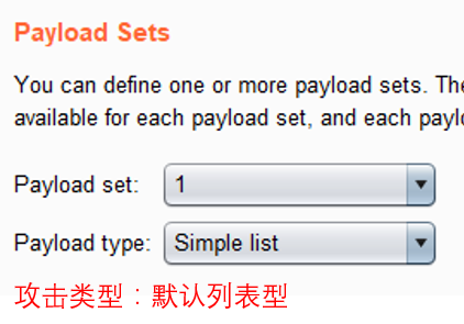 此类型将会设置两个Payload Sets 两个列表中的内容按顺序成对替换