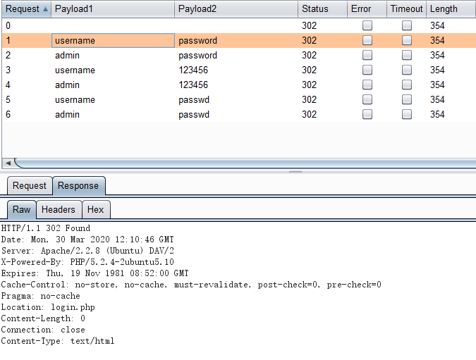 仔细查看有一处不一样就是Location,一个是index.php,一个是login.php 这两个刚好都是5个字符,所以筛选出含有index.php的结果,这时候就会将我们想要的结果筛选出来