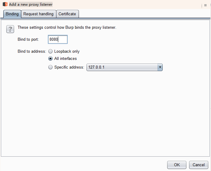 在Proxy->Options->Proxy Listeners->Add 添加代理侦听