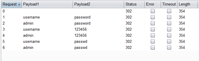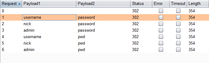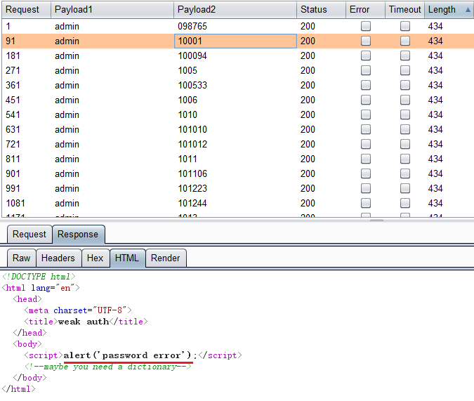 知识点补充:通过响应内容的长度可以作为一个特征来发现那个是正确的密码,或者通过响应的状态码,点击length可以进行升序或者降序排列。