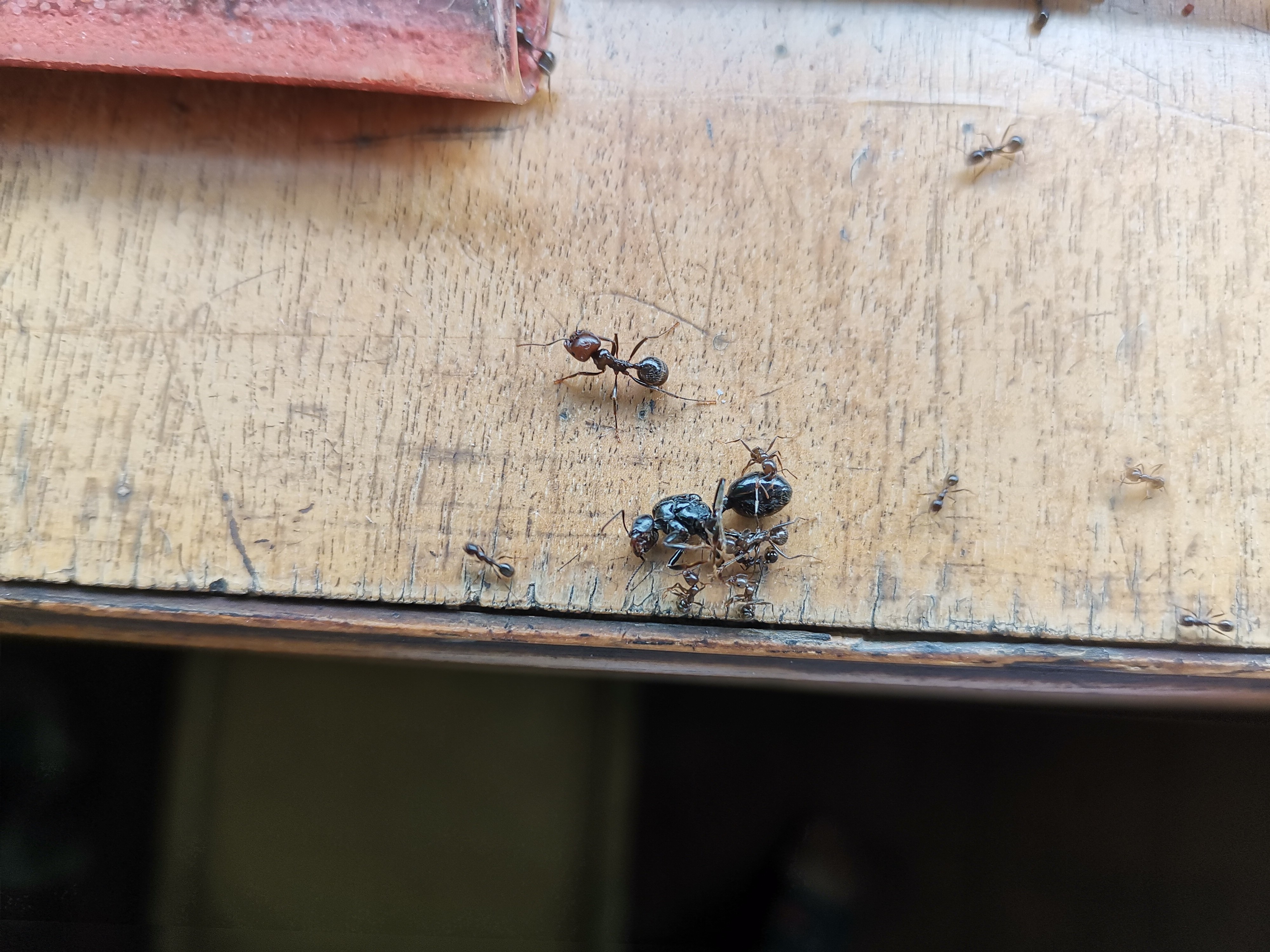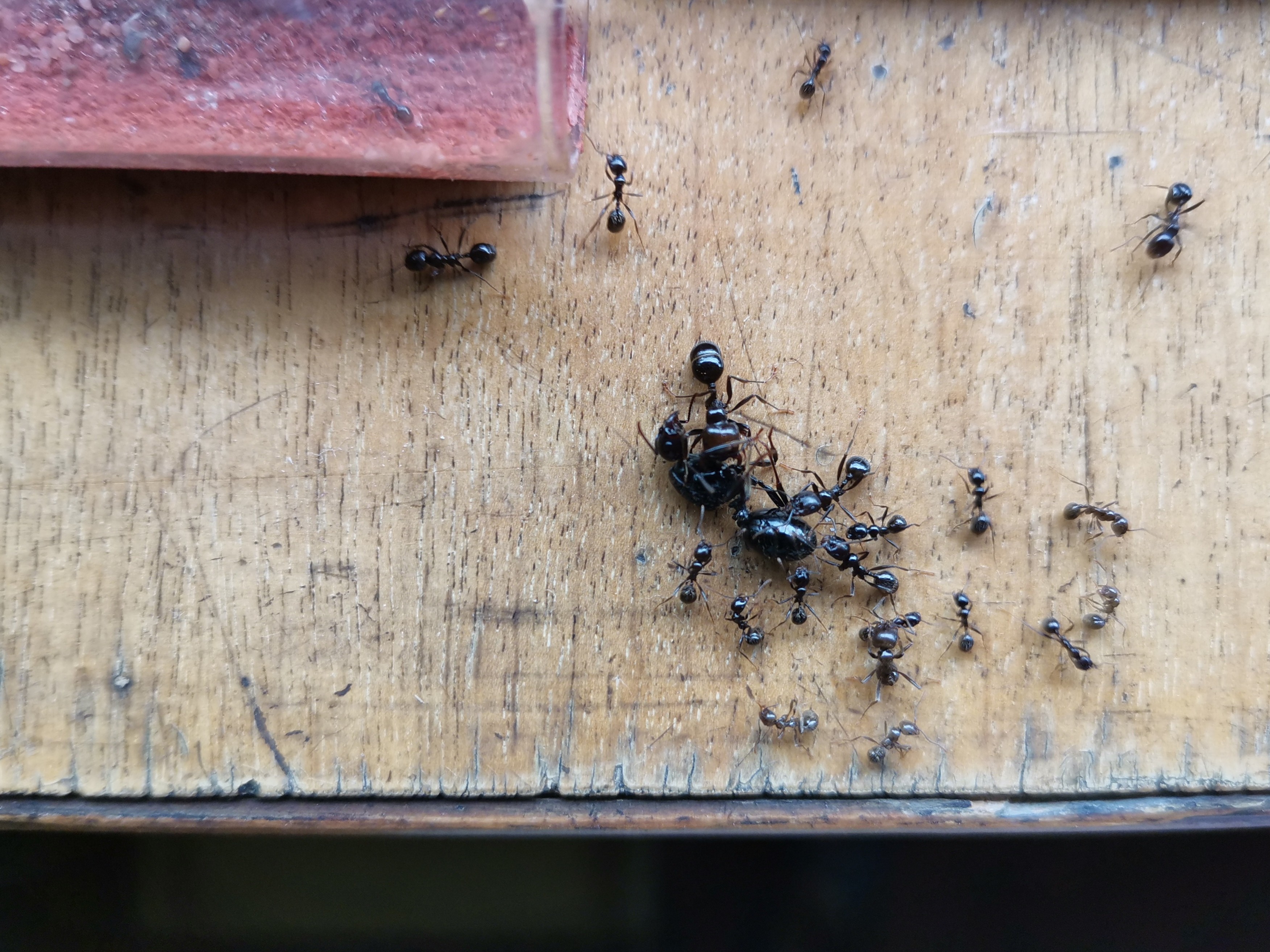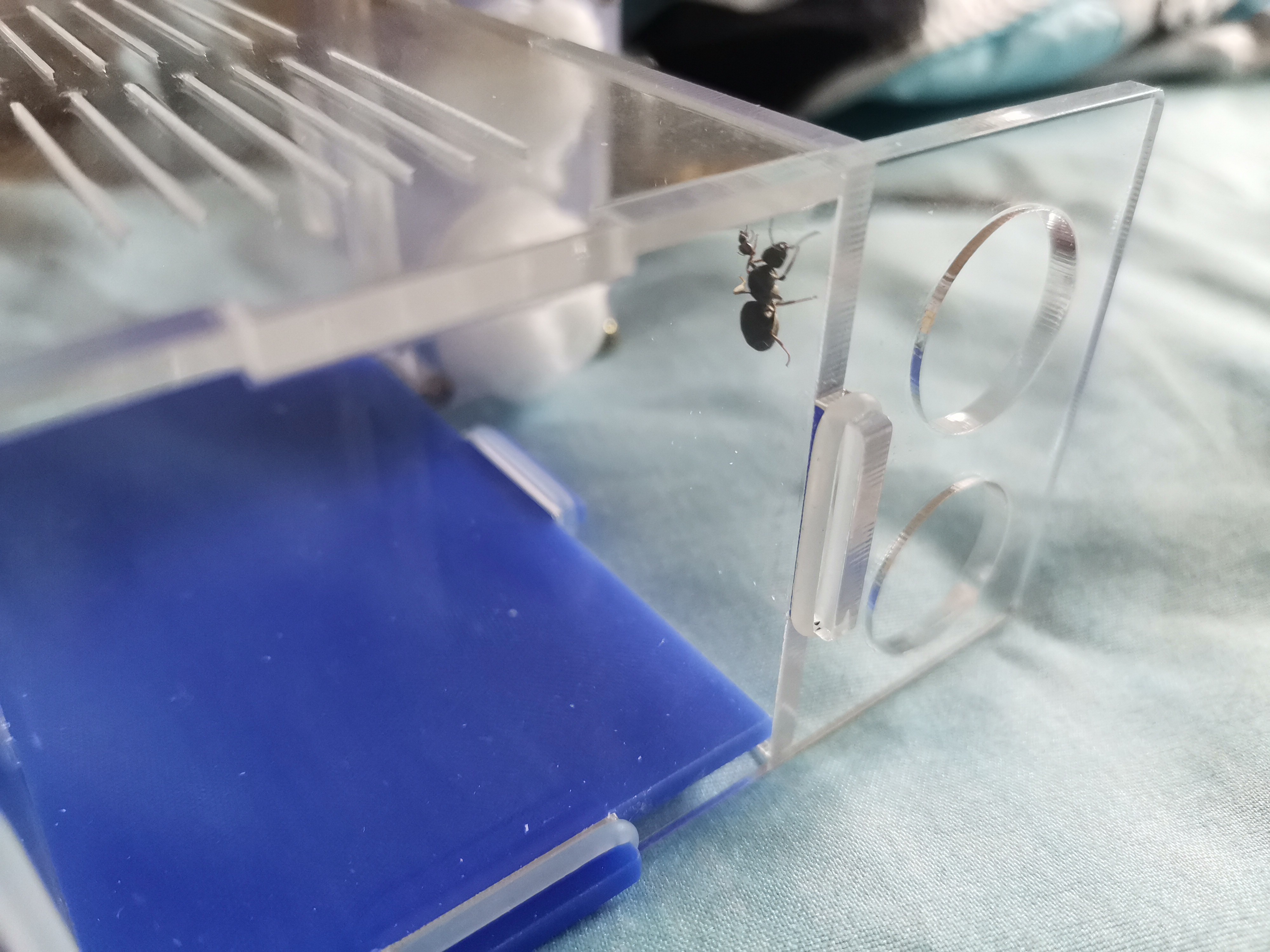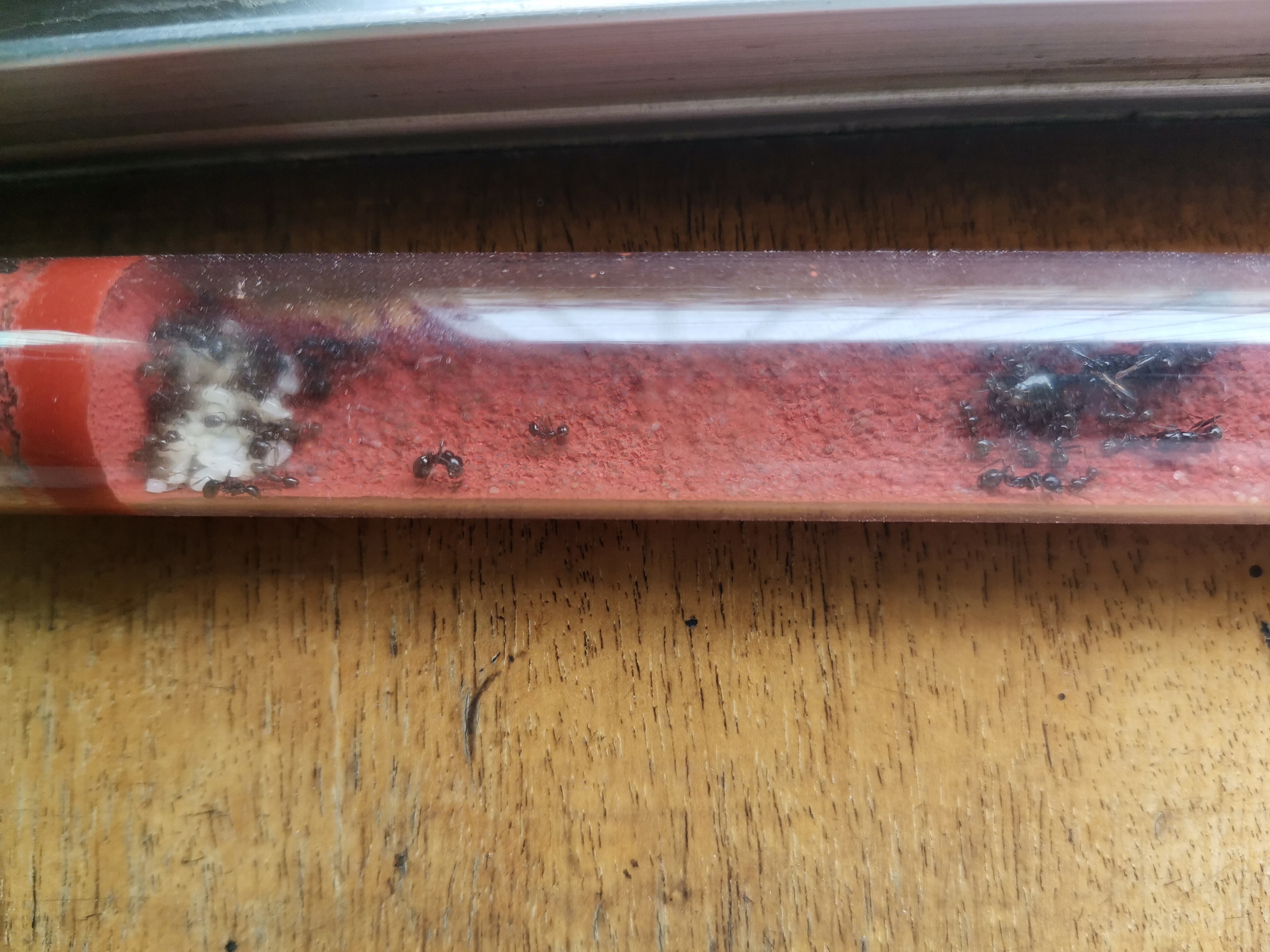 早上一看野蛮就这样暴毙了,后来想想极大可能是我晚上多次打扰,强光照射次数太多而导致的。图四是唯一的大工(也许算吧),是真的好看。即使蚁后走了,工蚁们也照样不离不弃。而我真正想说的是,在地球中,如果还有另一个也称得上”文明”的话,蚂蚁当之无愧。